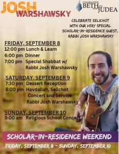Shabbat Shalom, and if you’re in the Chicago area this weekend, join us for a wonderful Shabbat and Selichot concert at Beth Judea in Long Grove!
